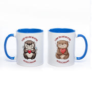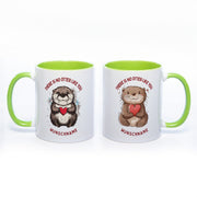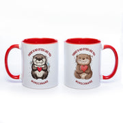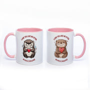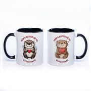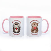 Premium Motiv-Tasse mit Wunschnamen, süßen Ottern und 2 Liebessprüchen zur Auswahl