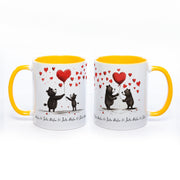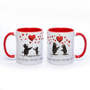 Verliebe dich in unsere spülmaschinenfeste Tasse mit den süßen Bärchenmotiven und 2 Wunschnamen, die unten auf der Tasse im Wechsel rundherum gehen. Ob zum Valentinstag, Jahrestag, Geburtstag, Muttertag, Vatertag... oder einfach so, um einem geliebten Menschen zu zeigen wie sehr er geliebt wird. Mit den niedlichen Motiven ist ein Lächeln bei jedem Schluck garantiert! Damit du lange etwas davon hast, ist sie auch noch spülmaschinenfest - WOW!