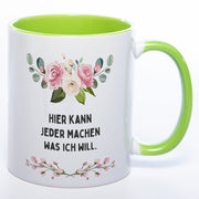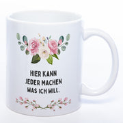 Blümchen-Tasse mit Spruch "Hier kann jeder machen was ich will." - Lustige Kaffeetasse spülmaschinenfest