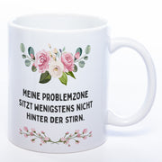 Blümchen-Tasse mit Spruch "Meine Problemzone sitzt wenigstens nicht hinter der Stirn." - Lustige Kaffeetasse spülmaschinenfest
