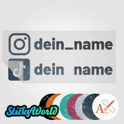 Doppelter Social Media Sticker mit Deinem Namen in Sonderfarben GLITZER, REFLEKTOR, HOLO, GOLD, SILBER, NEON, FARBWECHSEL, MILCHGLAS