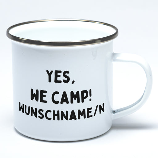 Yes, we camp! Emaille-Tasse mit Wunschname/n