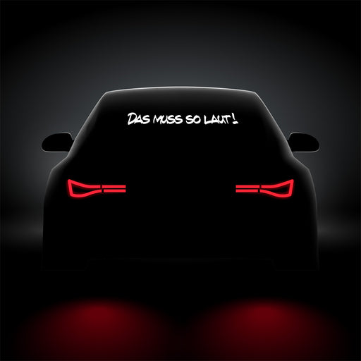 Zeig jedem, wer der Boss auf der Strasse ist, mit dem Schriftzug "DAS MUSS SO LAUT!" für die Heckscheibekscheibe. Waschstraßenfest und lange halt...